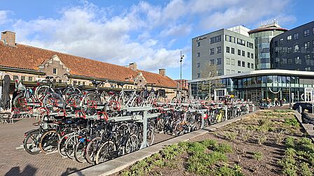 Tijdelijke fietsenstalling op Stationsplein Deventer