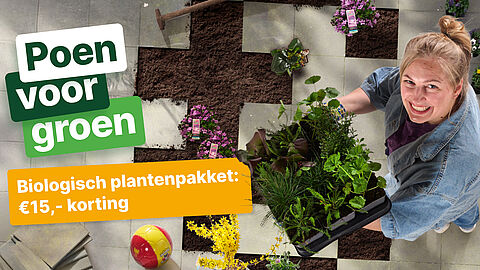 Wip een aantal grijze tuintegels eruit, zet biologische planten erin en geniet van een koele, kleurrijke tuin. Koop nu jouw gifvrije plantenpakket met € 15 korting (bij besteding van minimaal € 25). Bezoek een van de 4 deelnemende tuincentra. Let op: op=op!